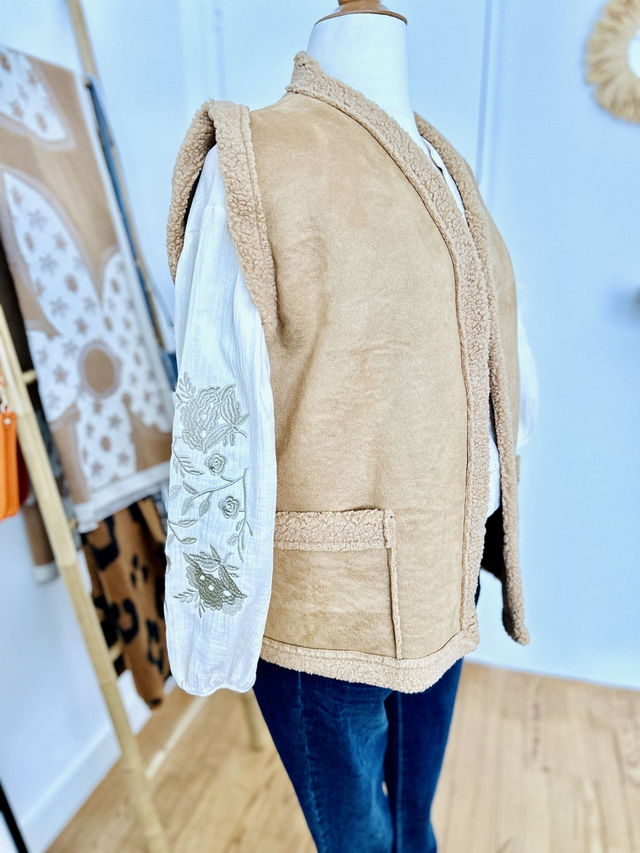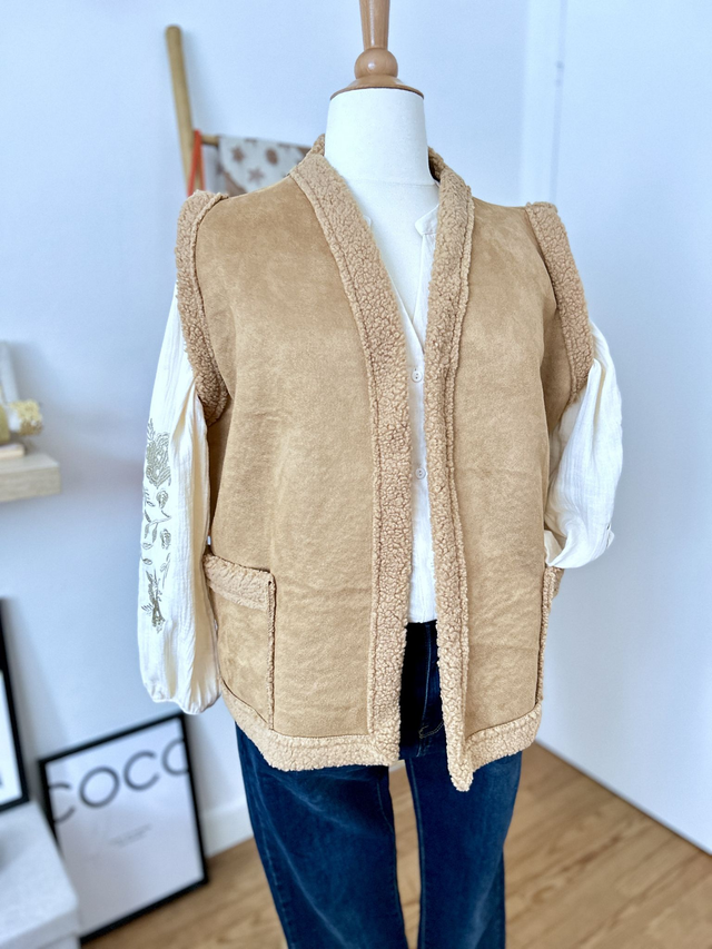 Gilet Sans Manches Bouclettes Beige Grande Taille Franck