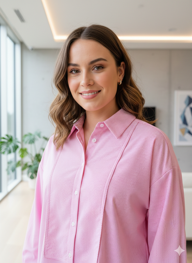 Chemise à rayures roses et blanches Grande Taille